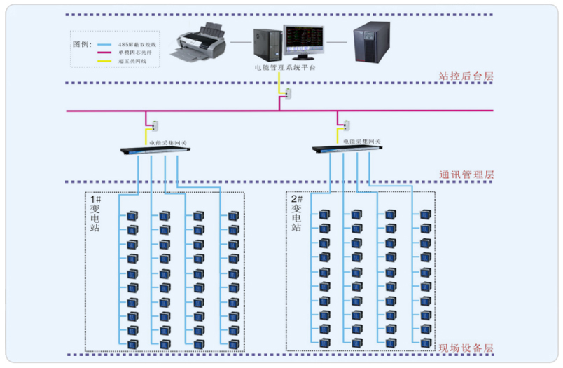 2.各個(gè)變電所內(nèi)進(jìn)出線回路的電能和電參量的數(shù)據(jù)采集、電能計(jì)量。