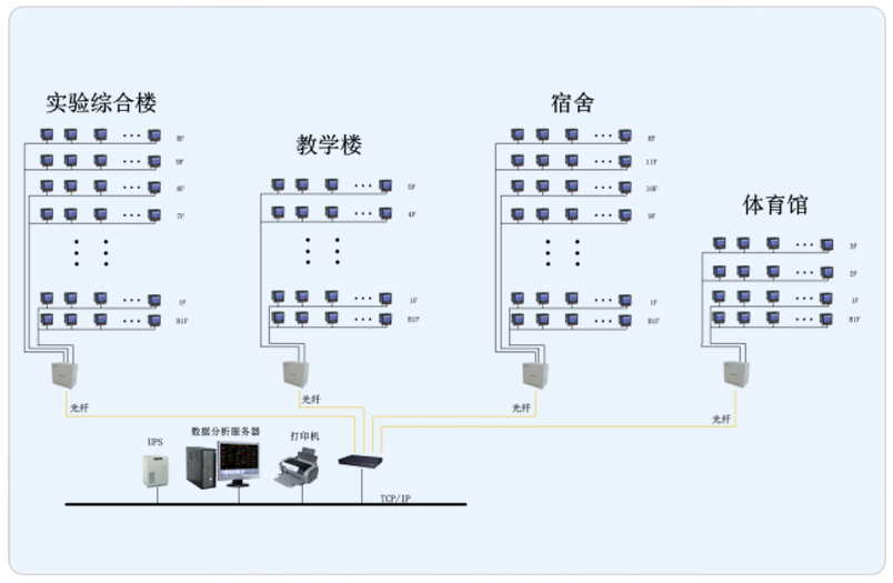 系統(tǒng)采用Acrel-6000型電氣火災(zāi)監(jiān)控系統(tǒng),整個(gè)系統(tǒng)采用網(wǎng)絡(luò)分布式結(jié)構(gòu),監(jiān)控主機(jī)位于一樓的值班室。配電回路配備安科瑞漏電火災(zāi)探測(cè)器ARCM300系列。該項(xiàng)目實(shí)現(xiàn)了平谷區(qū)濟(jì)望幼兒園漏電火災(zāi)監(jiān)控的時(shí)時(shí)監(jiān)控。監(jiān)控設(shè)備通過(guò)屏蔽雙絞線至監(jiān)控主機(jī)實(shí)現(xiàn)遠(yuǎn)程的漏電監(jiān)控。