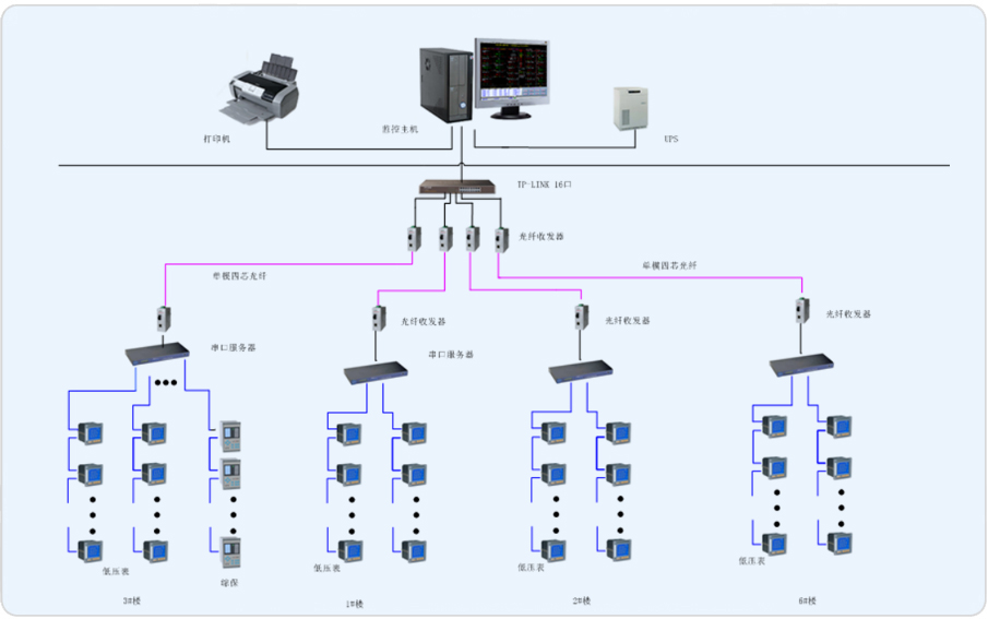 本次項(xiàng)目為制造工程技術(shù)大樓的電力監(jiān)控系統(tǒng)。通過利用原本已安裝的智能儀表,將原非智能儀表更換為智能儀表。通過組建系統(tǒng)網(wǎng)絡(luò),實(shí)時(shí)監(jiān)測變電所內(nèi)各個(gè)回路的電流、電壓、功率、開關(guān)狀態(tài)等電參量,由此達(dá)到變電所少人值守或無人值守的智能化管理。
