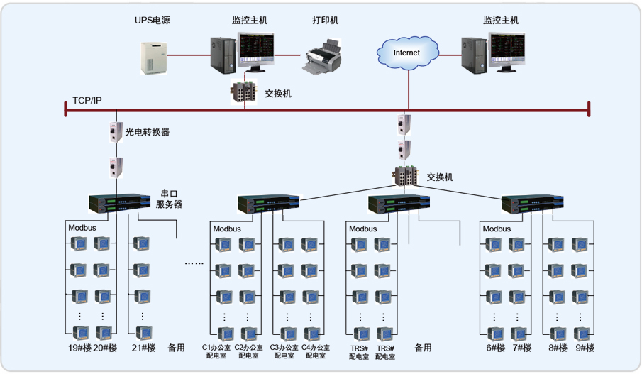 Acrel-3000電能管理系統主要實現對上海金陵金橋工業園區的四個配電房和各棟樓宇的若干個回路進行監測;監測范圍為3#、4#、5#、6#配電間的進線柜和饋線柜,6#、7#、9#、12#、13#、14#、15#、16#、17#、18#、19#、20#、21#、22#、23#、24#、25#、26#、27#、28#、29#、30#、31#樓配電柜所安裝的安科瑞電力儀表。