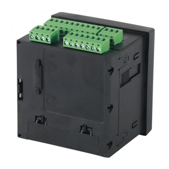 ARTM-Pn采用面板嵌入式安裝,首先柜體盤面上制作規定尺寸的正方形槽孔,裝置取下支架后嵌入槽孔,再將支架推入卡槽鎖緊即可。