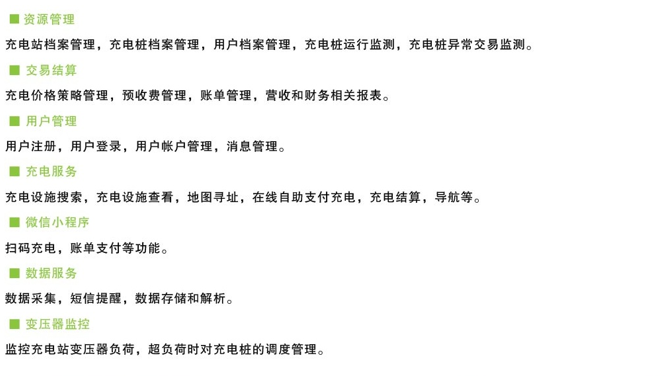 充電樁可選配WIFI模塊或GPRS模塊接入互聯網,配合加密技術和秘鑰分發技術,基于TCP/IP的數據交互協議,與云端進行直連。云平臺包含了充電收費和充電樁運營的所有功能,包括財務管理、變壓器監控和運營分析等功能。